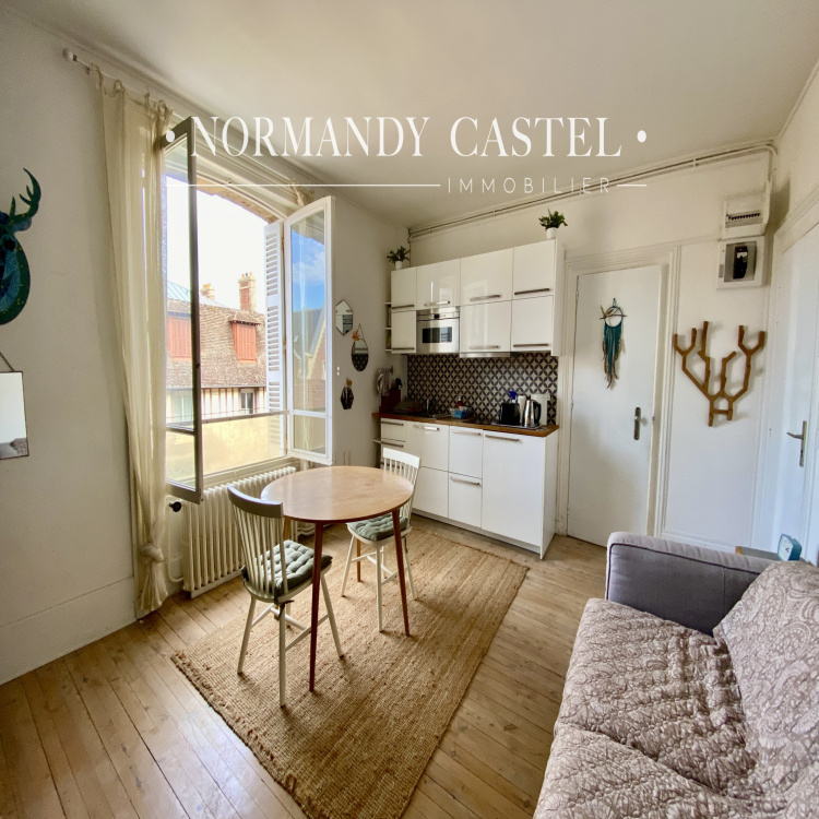 NORMANDY CASTEL vous présente ce charmant studio situé au 1er étage d'une petite copropriété, en hypercentre de Trouville, à quelques pas du quai. Il se compose d'une entrée desservant une pièce...