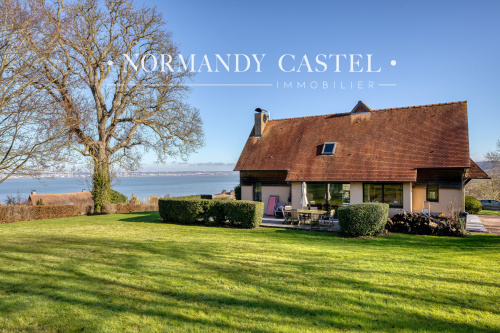 NORMANDY CASTEL vous présente cette belle propriété située dans les mi-hauteurs de Trouville-sur-Mer à quelques centaines de mètres du centre-ville et de la plage. La maison offre depuis une terrasse exposé sud de 80m², avec bassin/spa de nage intégré, un panorama sur le Mont Canisy, l'hippodrome et le littoral des Vaches Noires. L'ensemble permet de bénéficier d'une situation de plain-pied depuis l'entrée de la maison avec au rdc un séjour/salon avec cheminée/insert avec répartiteur de chaleur, une cuisine aménagée/équipée, une chambre séparée avec sa propre salle de douche. A l'étage, une pièce palière distribue une salle de douche avec WC et trois chambres individuelles. La propriété offre également un sous-sol complet, carrelé et partiellement chauffé. A l'extérieur, les espaces sont soignés avec des espaces de repos, un jardin paysagé, des emplacements de parking et un carport en aluminium photovoltaïque permettant un stockage d'électricité destiné à la maison. Les informations sur les risques auxquels ce bien est exposé sont disponibles sur le site Géorisques : www.georisques.gouv.fr
